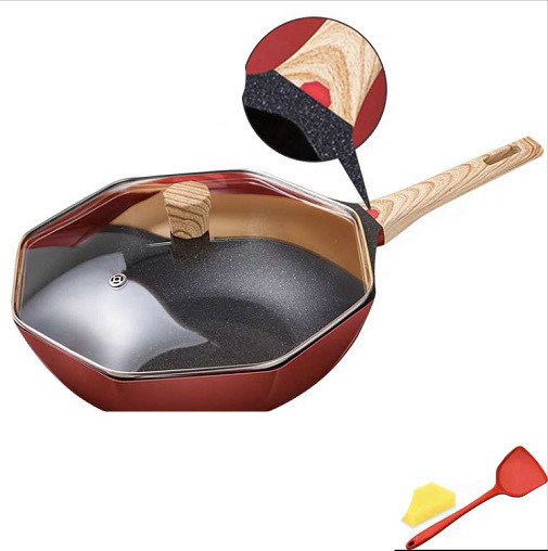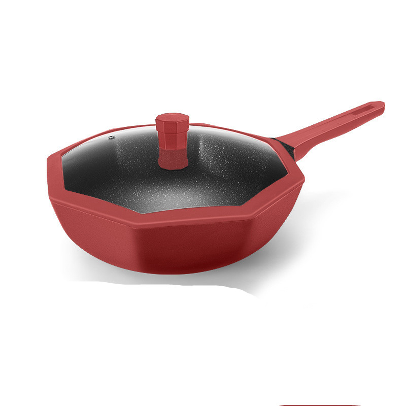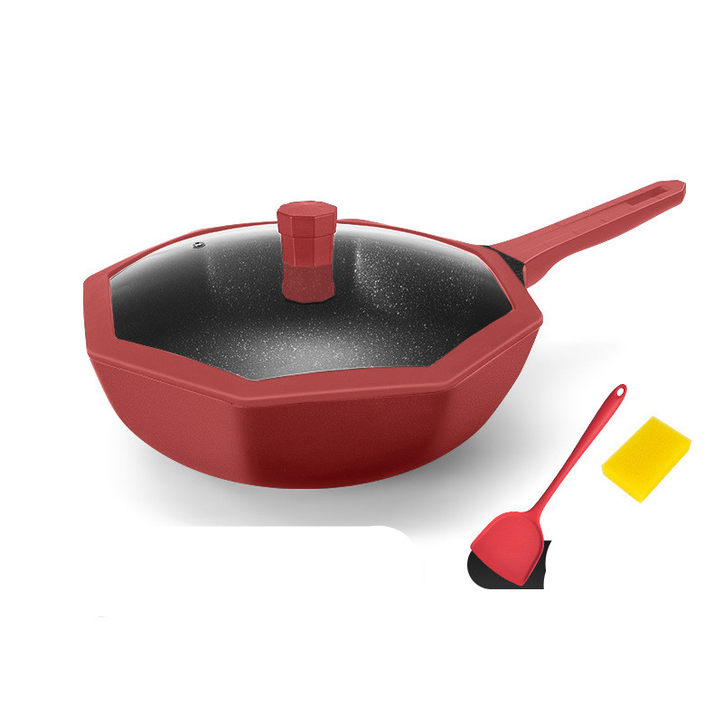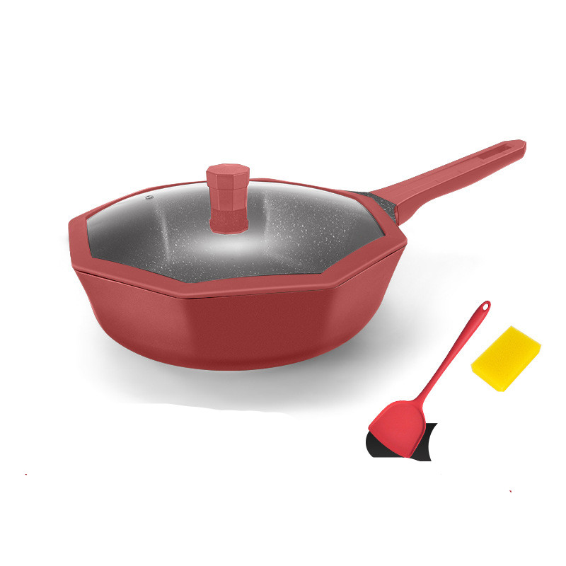 Color: Star Anise Series 28 Deep Frying Pan Red No Gift, Star Anise Series 28 Deep Frying Pan Red With Red Silicone Spatula, Star Anise Series 30 Wok Red No Gift, Star Anise Series 30 Wok Red With Red Silicone Spatula and Yellow Sponge, Star Anise Series 28 Frying pan red no gift, octagonal series 24 soup pot red no gift, octagonal series 16 milk pot red no gift, octagonal series 30 wok red with red silicone spatula and yellow sponge-stainless steel cover
