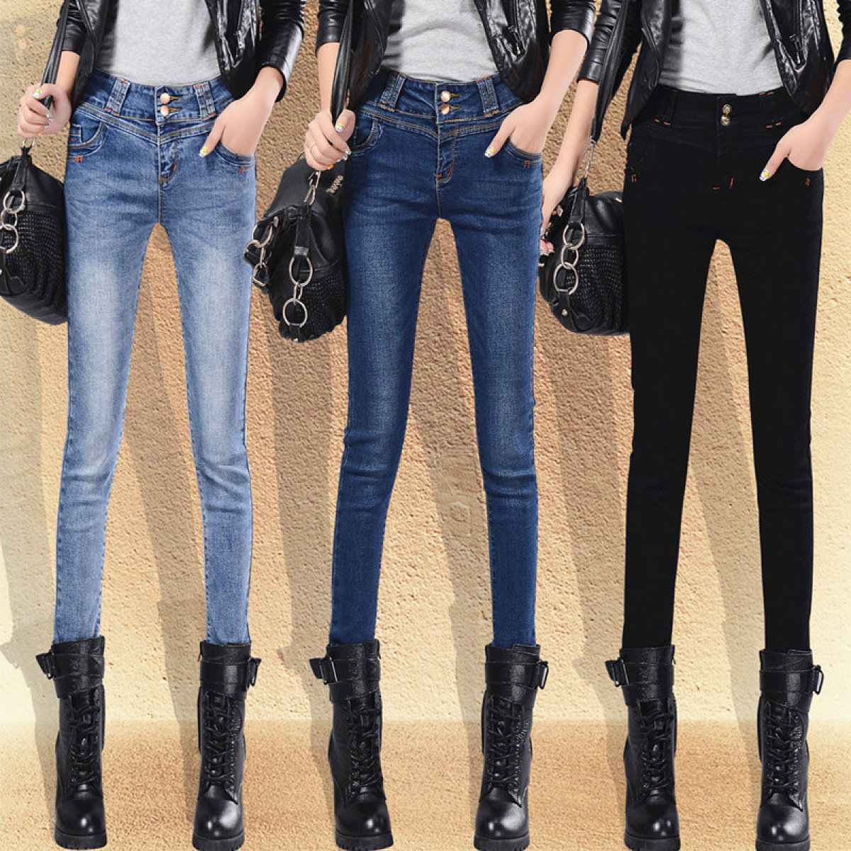 Spring And Autumn Korean Style High Waist Slim Slimming High Stretch Cotton Jeans