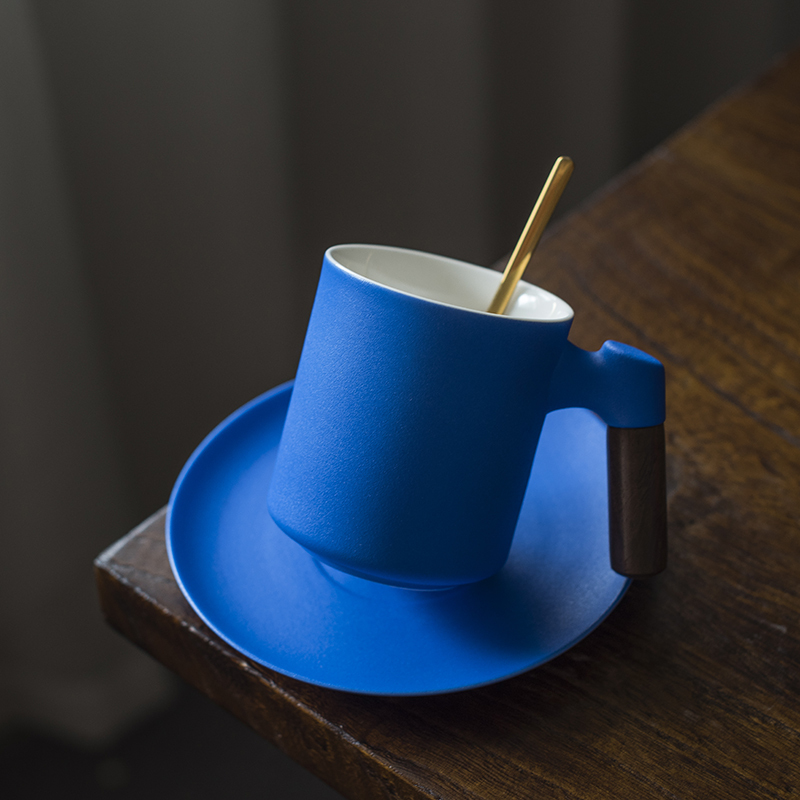 D: Mu Wu coffee cup (blue) single cup wooden handle