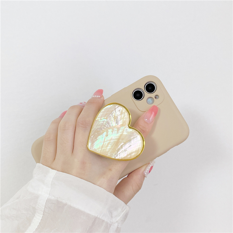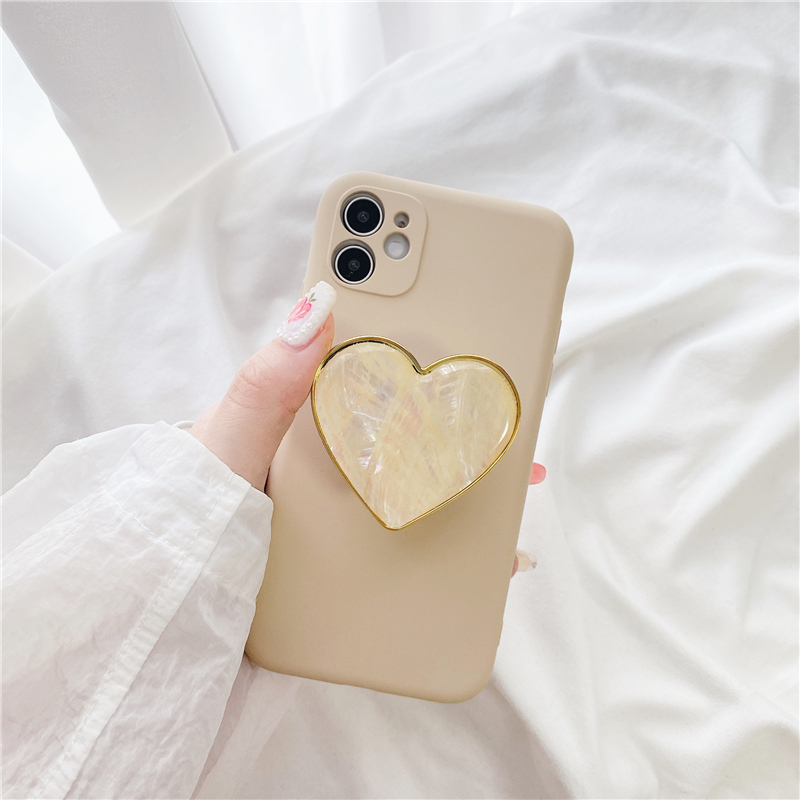 Popular Elements: Khaki Shell Pattern Love Heart Stand Phone Case
