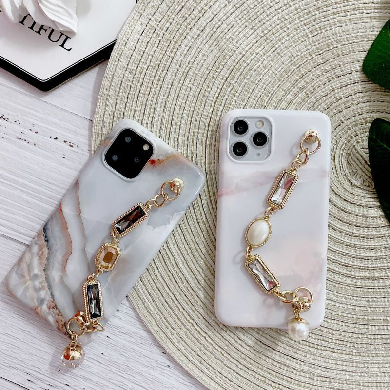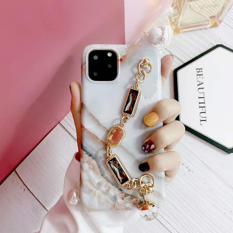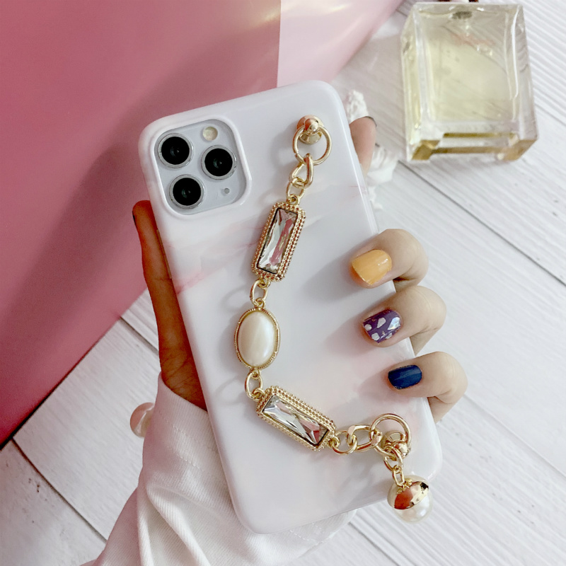 Ice Cracked Jade Pattern Wrist Strap With Rhinestones All-inclusive Anti-fall Soft Shell Mobile Phone Case