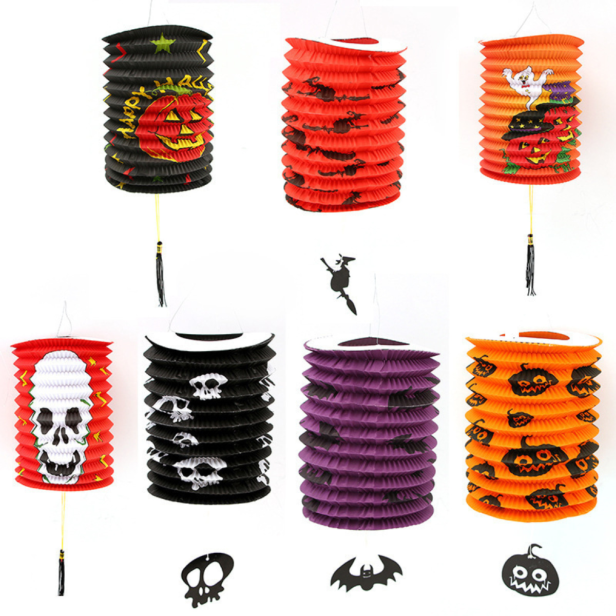 Size: Orange lantern pumpkin style, black lantern skull style, purple lantern bat style, red lantern witch style, orange lantern ghost pumpkin style, black lantern pumpkin letter style, red lantern skull style,