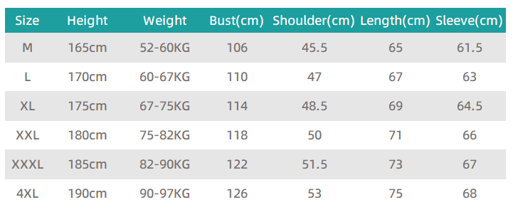 Size: M, L, XL, 2XL, 3XL, 4XL