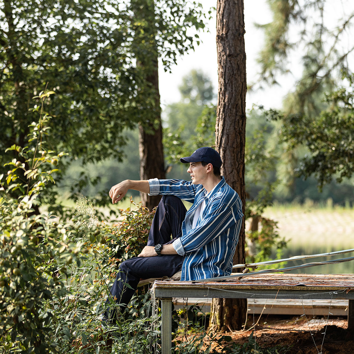 Color: blue and white strips
