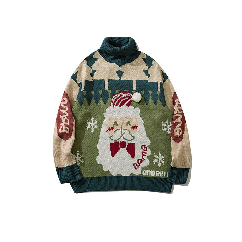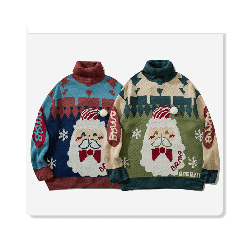 Hong Kong Style Neutral Jacquard Personality Loose Sweater All-match High Collar