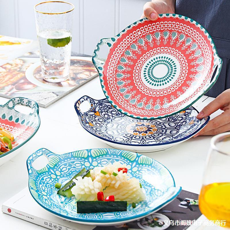 D: 11-inch double ear egg-shaped plate-blue orange,