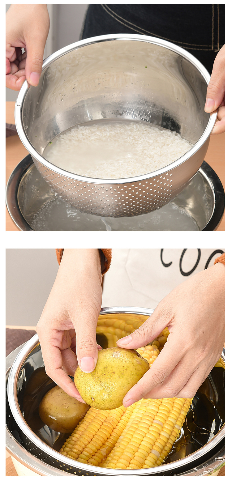 Hold fruits and vegetables/wash rice/wash fruits and vegetables, etc.