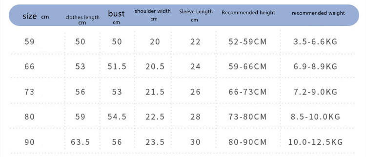 Suitable for height: 59cm recommended for newborns-59, 66cm recommended for newborns-66, 73cm recommended for newborns-73, 80cm recommended for newborns-80, 90cm recommended for newborns-90