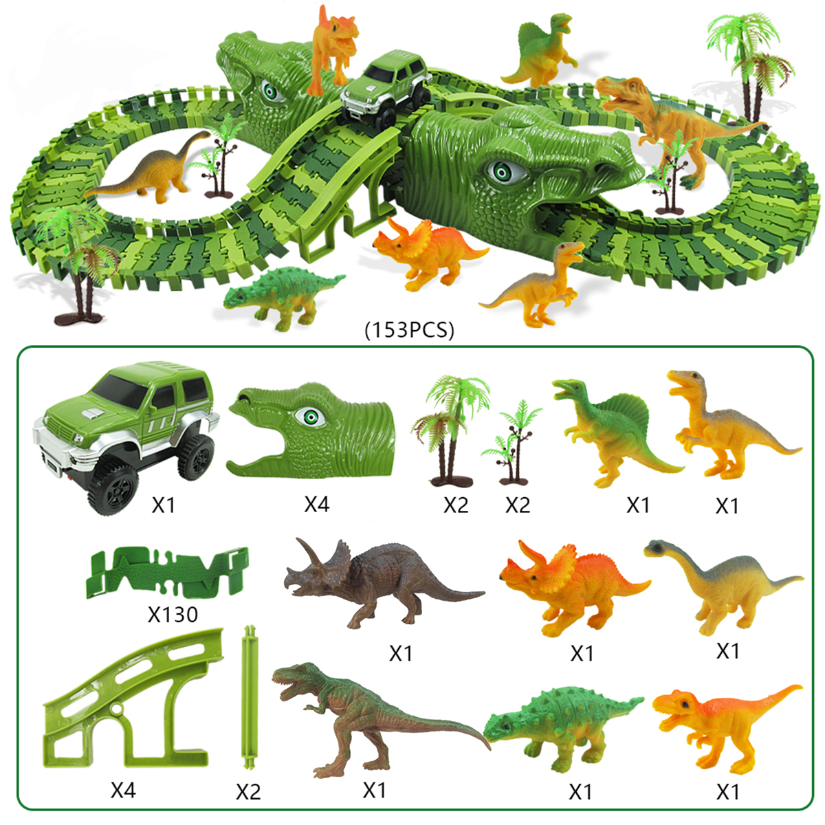 Color: Dinosaur track set total 153PCS (bag assembly gift bag)