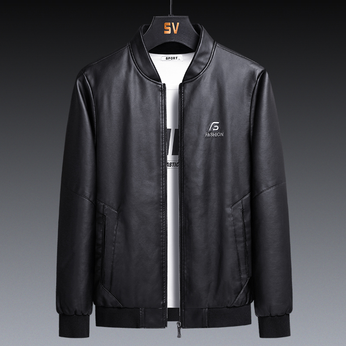 Features: stand-up collar, zipper