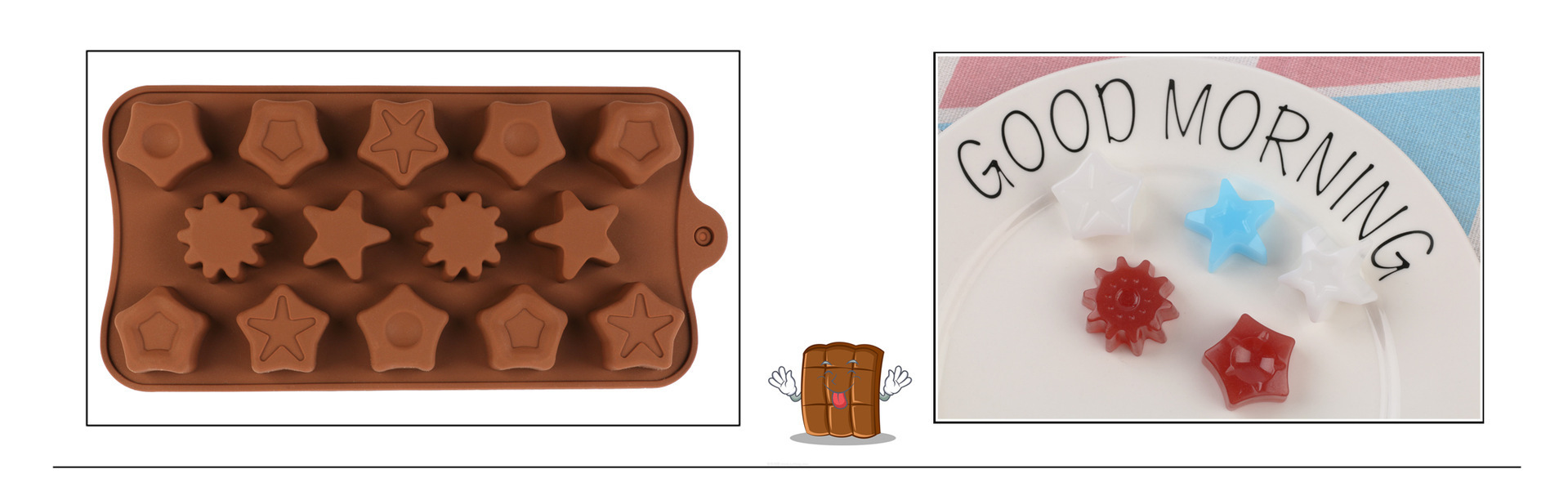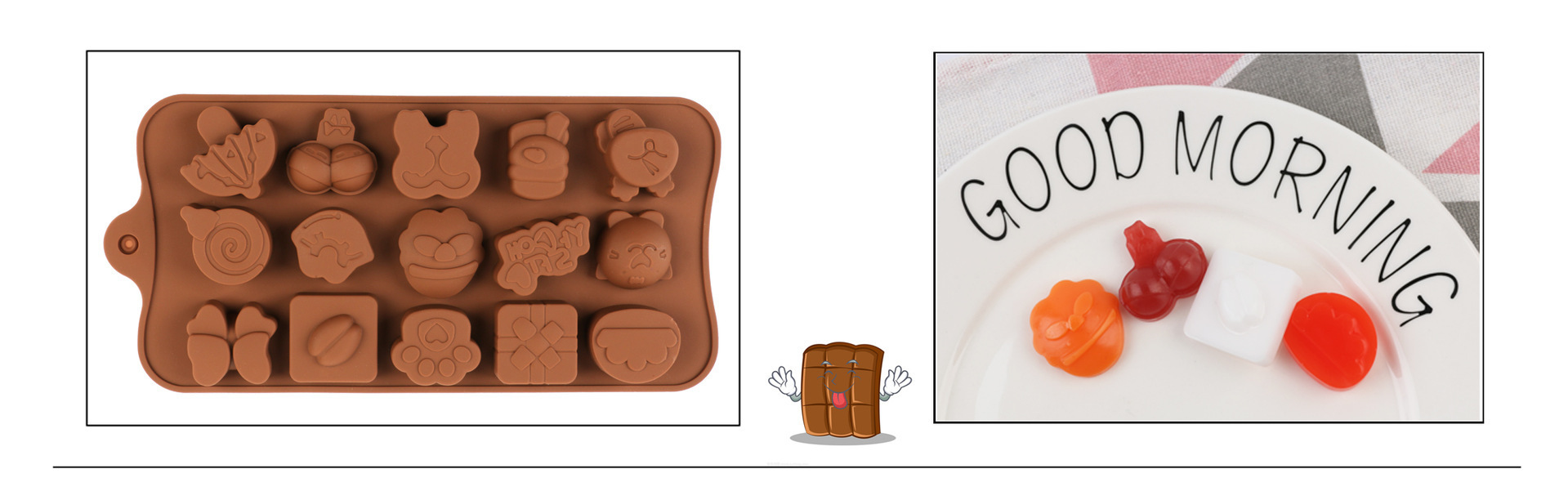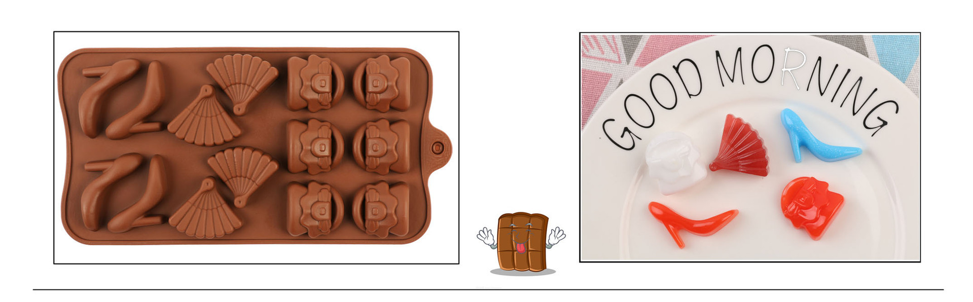 Specifications: 01-14 with 3 high heels, 02-15 with 3 flower shapes, 03-24 with chocolate, 04-15 with swirl, 05-15 with 3 tulips, 06-15 with bow, 07-55 with heart , 08-4 models, 09-15 with stars, 10-14 with 5 stars, 11-28 with emoji, 12-15 with weather, 13-12 with 12 bars of chocolate, 14-15 with toys, 15- 15 with Chinese knot, 16-15 with drop heart shape, 17-letter, 18-8 with animal, 19-15 with swirl heart shape