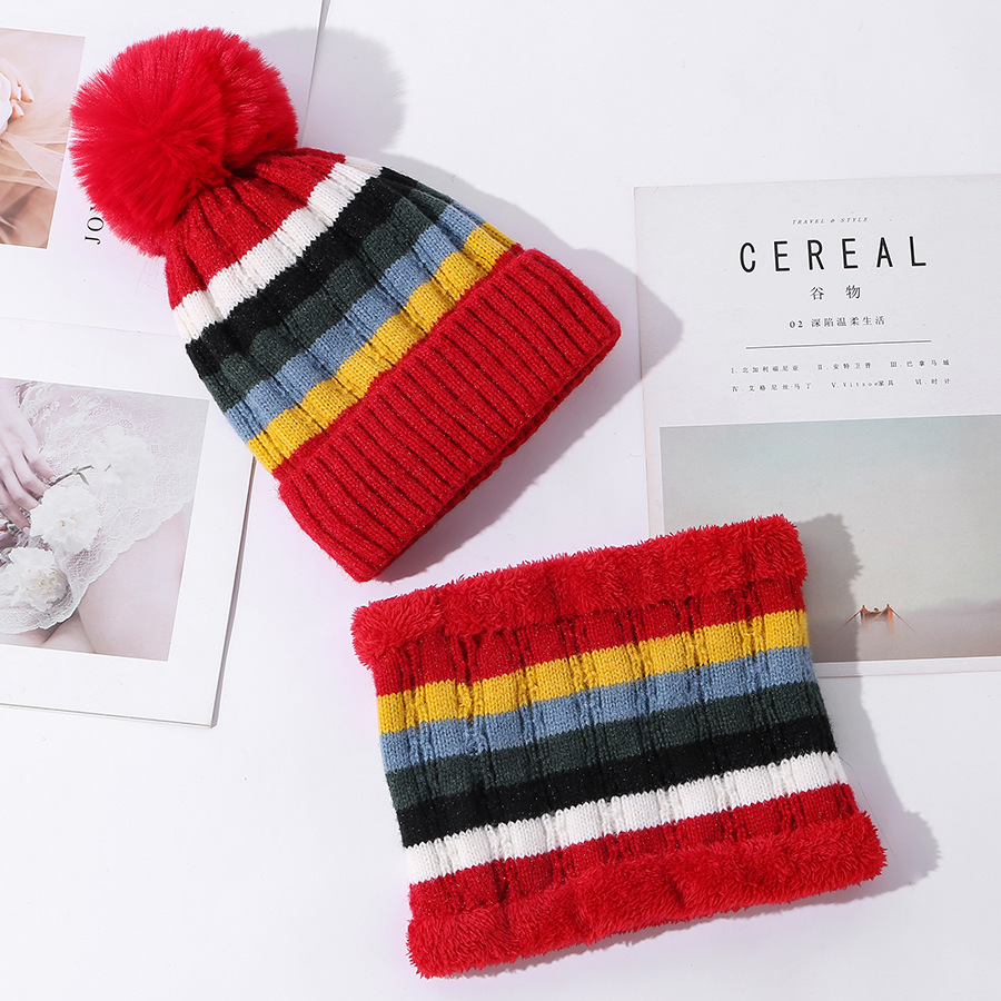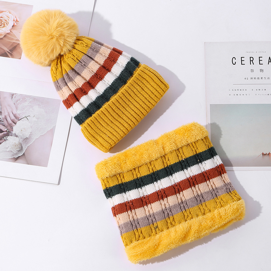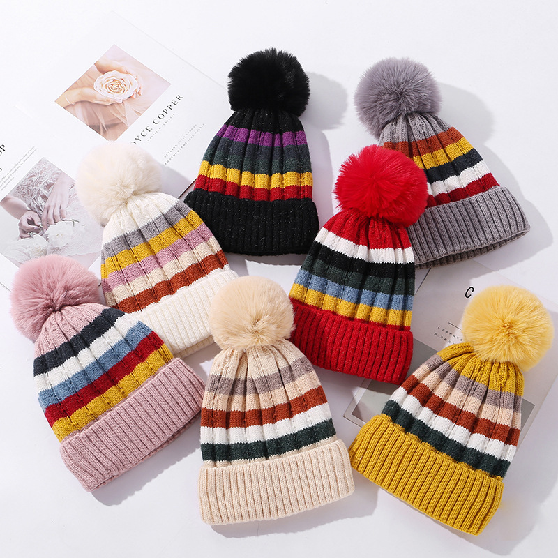 Women's Color Matching Striped Thick Warm Knitted Hat