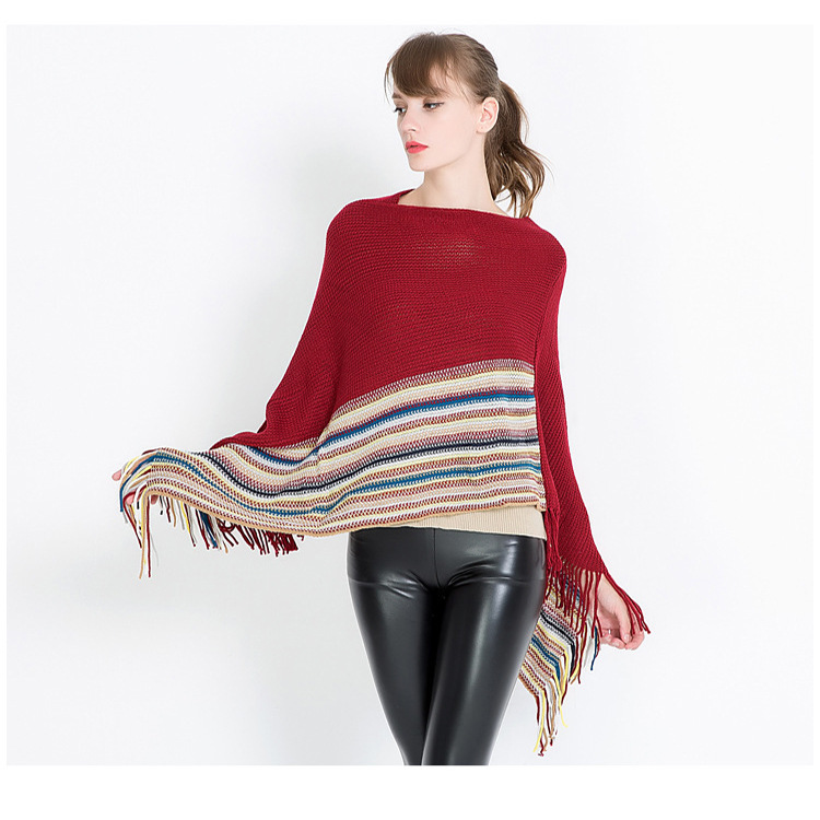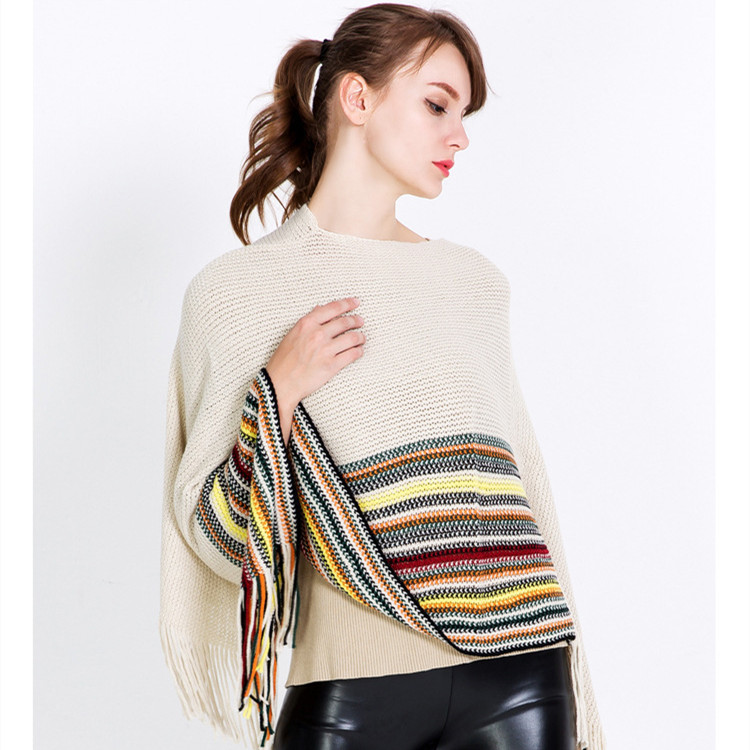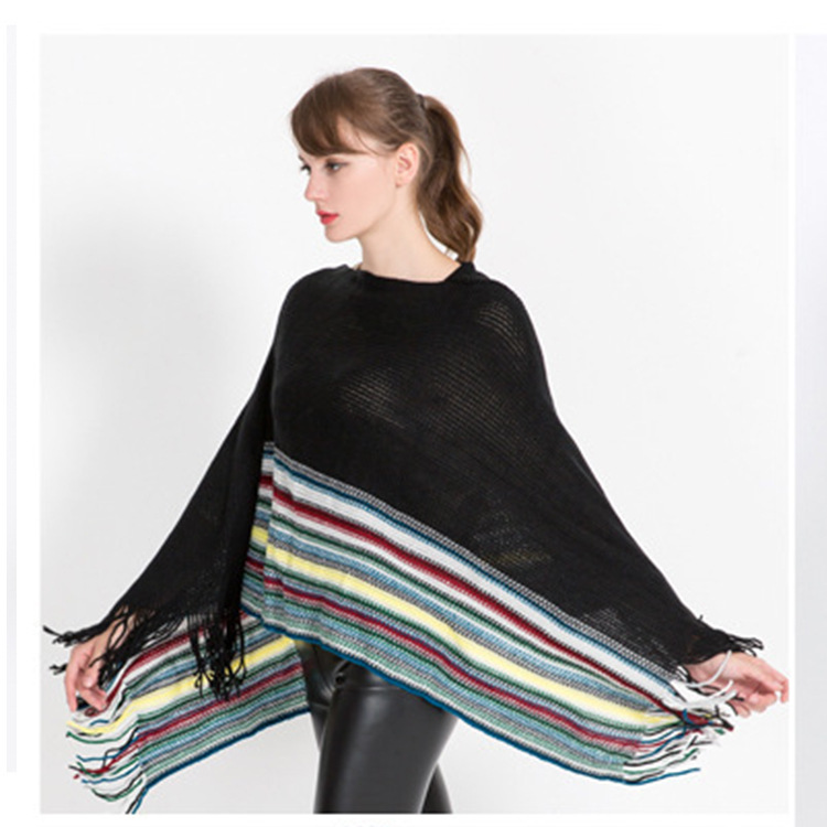 Warp-knitted Color Block Jacquard Striped Pullover Shawl