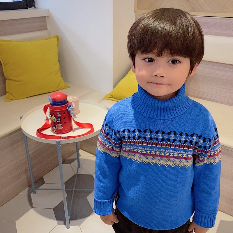 Cool Turtle Neck Blue Sweater for Toddler Boys