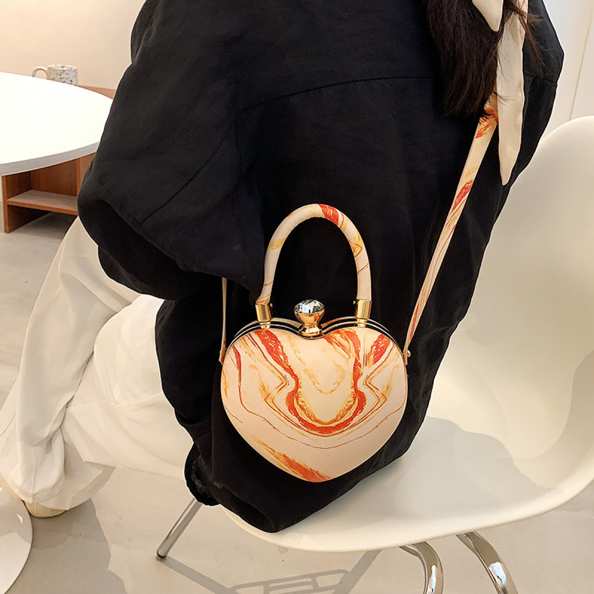 Popular Personality Western Style Handbag Shoulder Chain Slung Heart-shaped