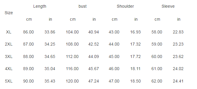 Size: XL, XXL, 3XL, 4XL, 5XL