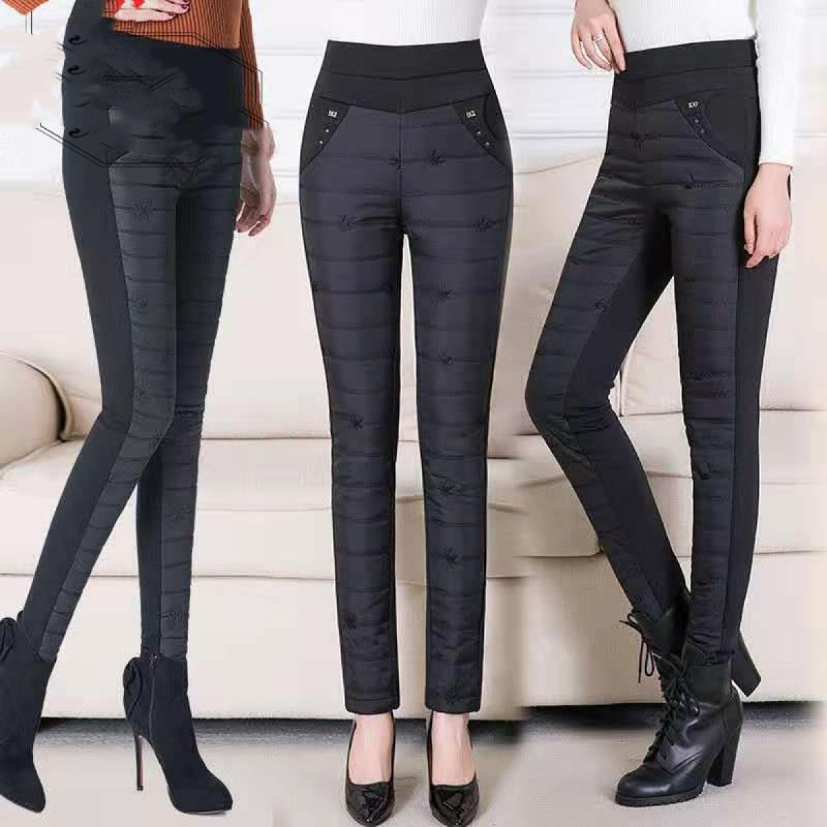 Women's Warm High-waisted Down Cotton Trousers