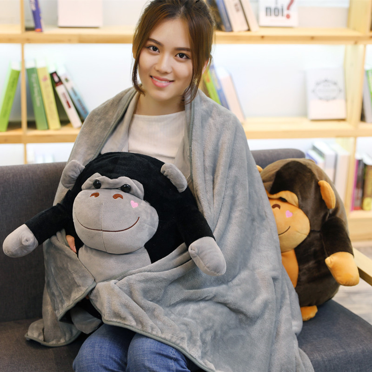 There are zippers on the back of the orangutans, and the blanket can be taken out from here!