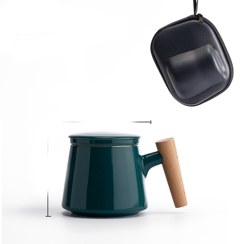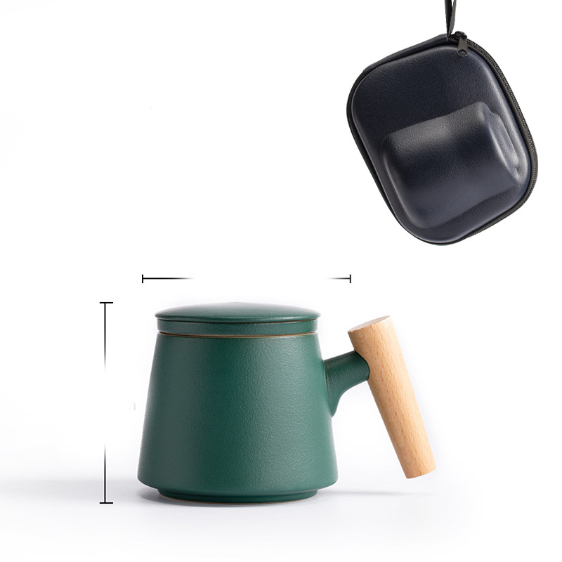 Style M: elegant cup with wooden handle + tea caddy + travel bag [malachite green],