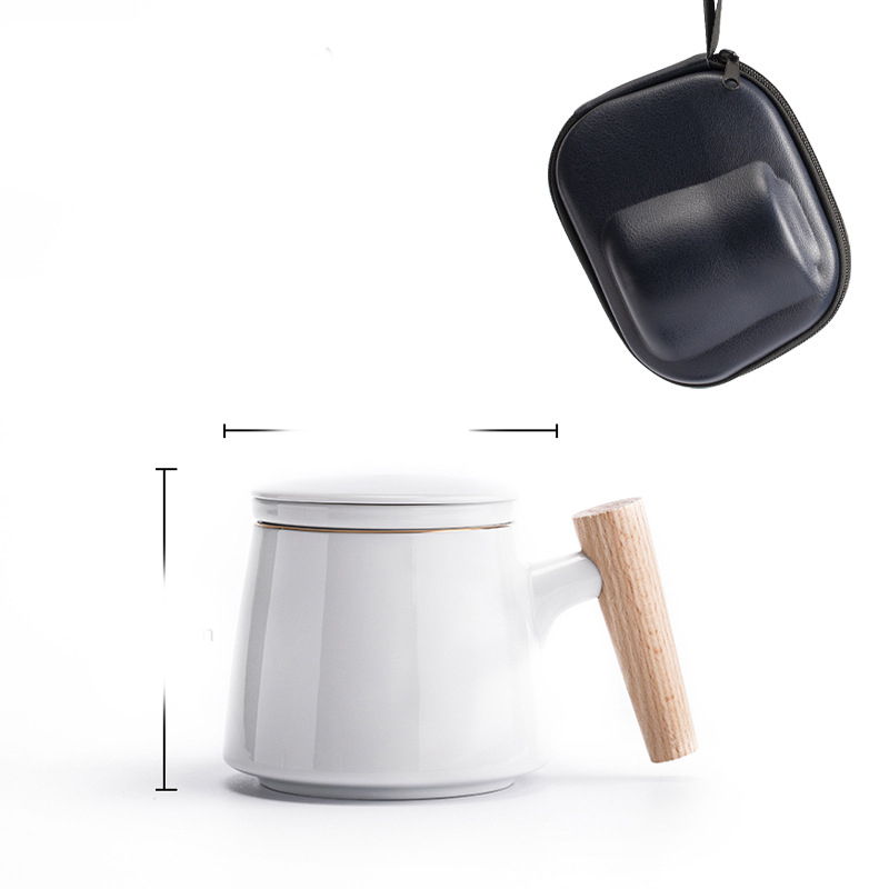Style N: Elegant Cup with Wooden Handle + Tea Caddy + Travel Bag [Condensed White]