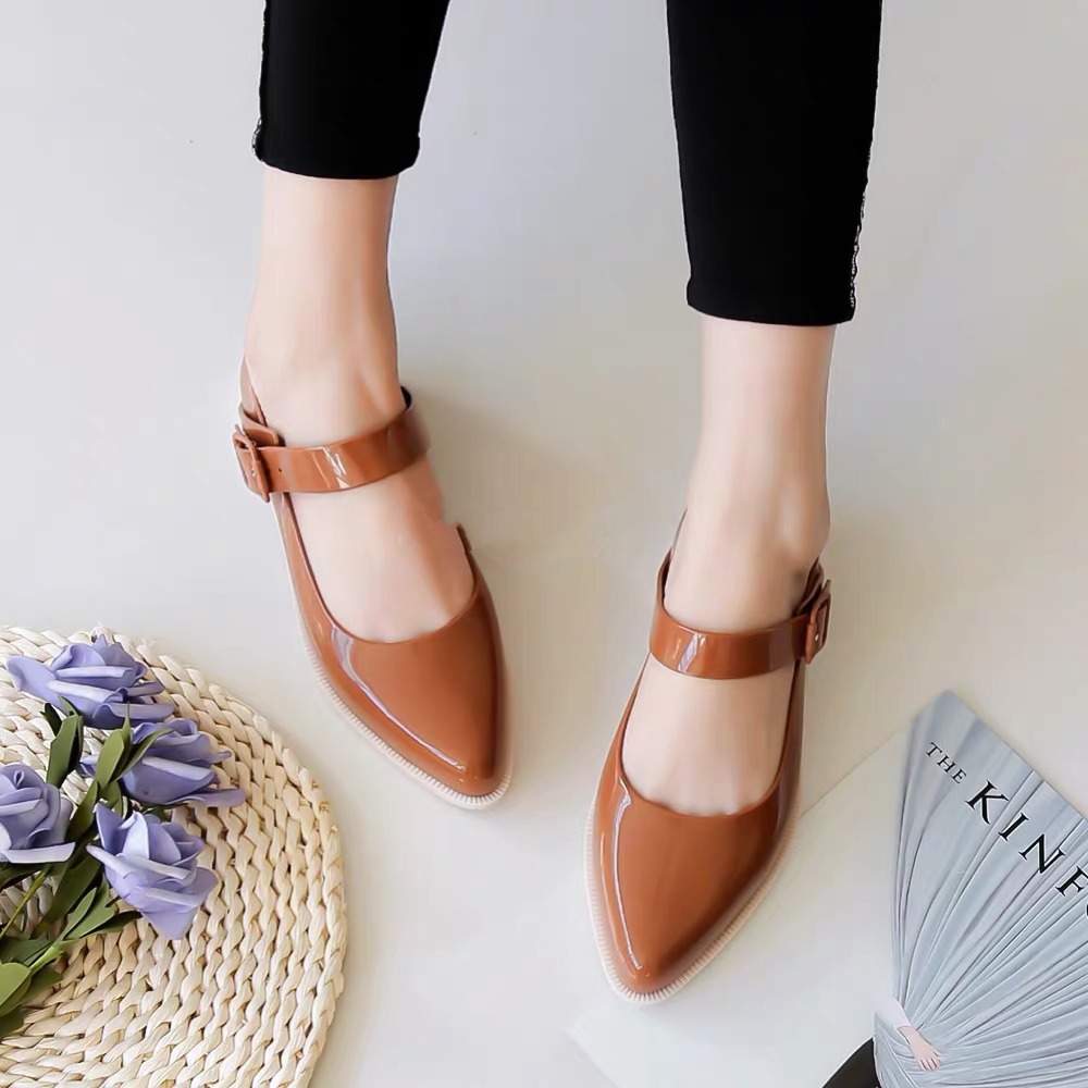 Pointed Toe Color-block Buckle Flat Women's Shoes