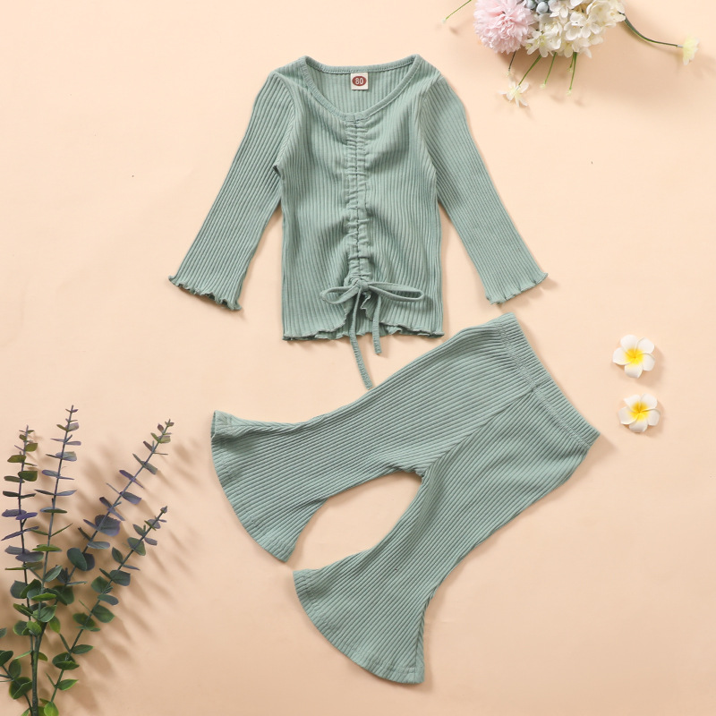 Solid Color Umbilical Exposed Trumpet Sleeve Girls Suit 0-3 Years Old Baby