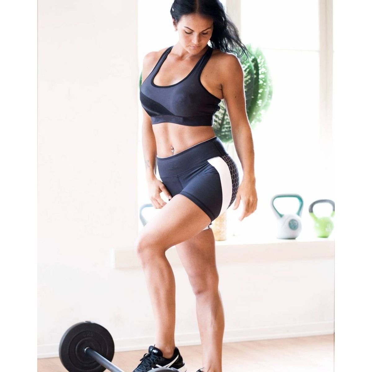 Color: black and white shorts