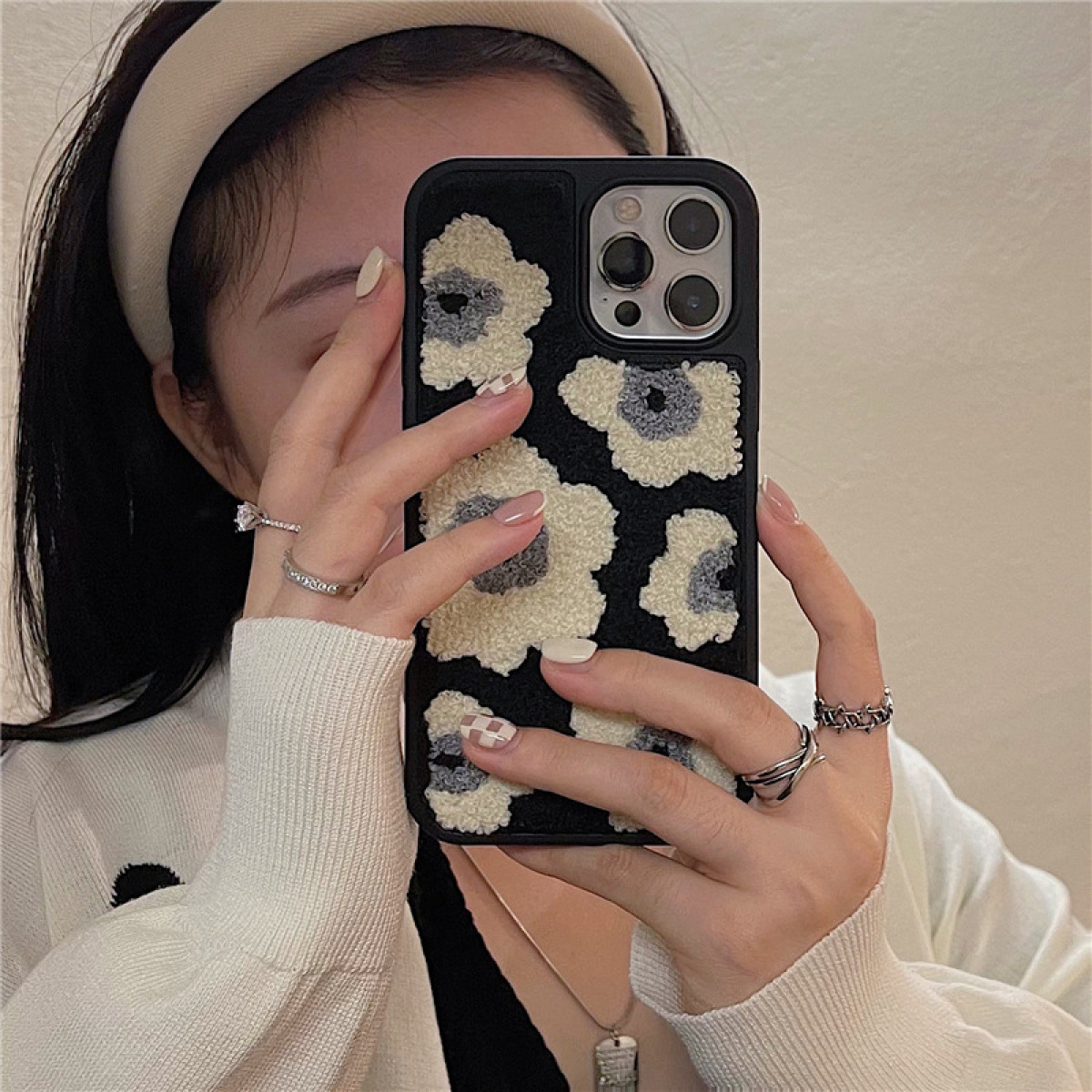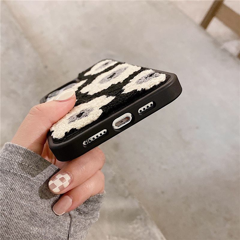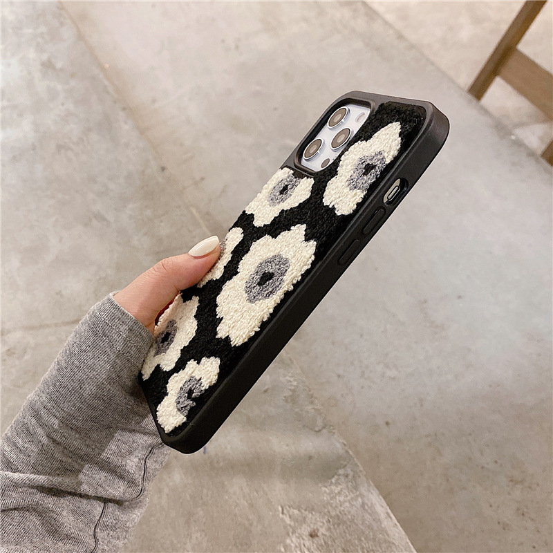 Leather hard shell plush black flowers
