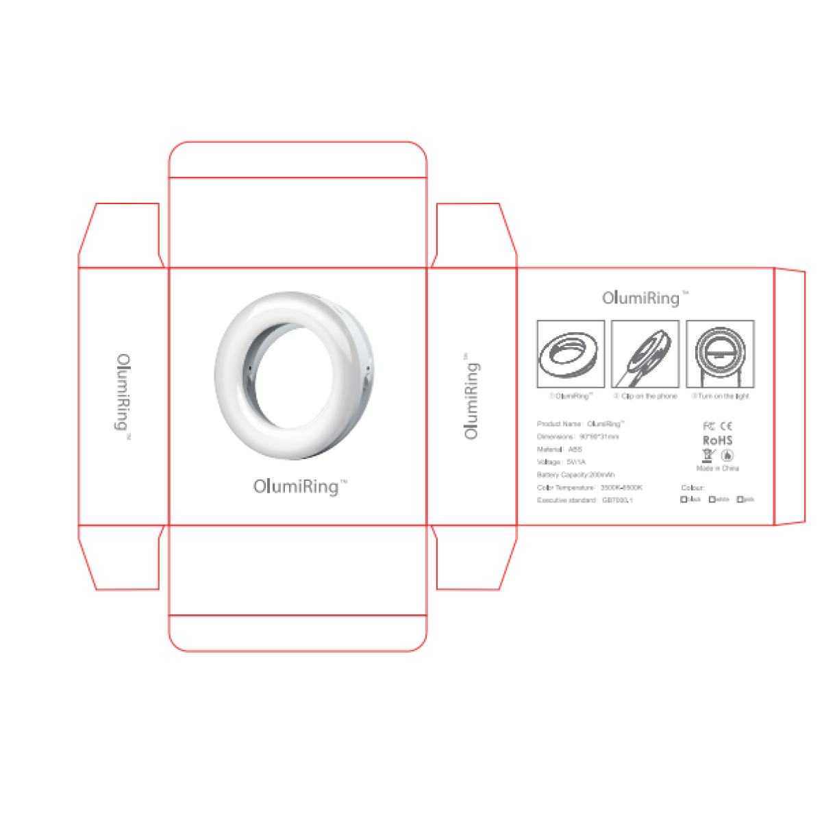 MOQ3000 custom selfie light tuck up box