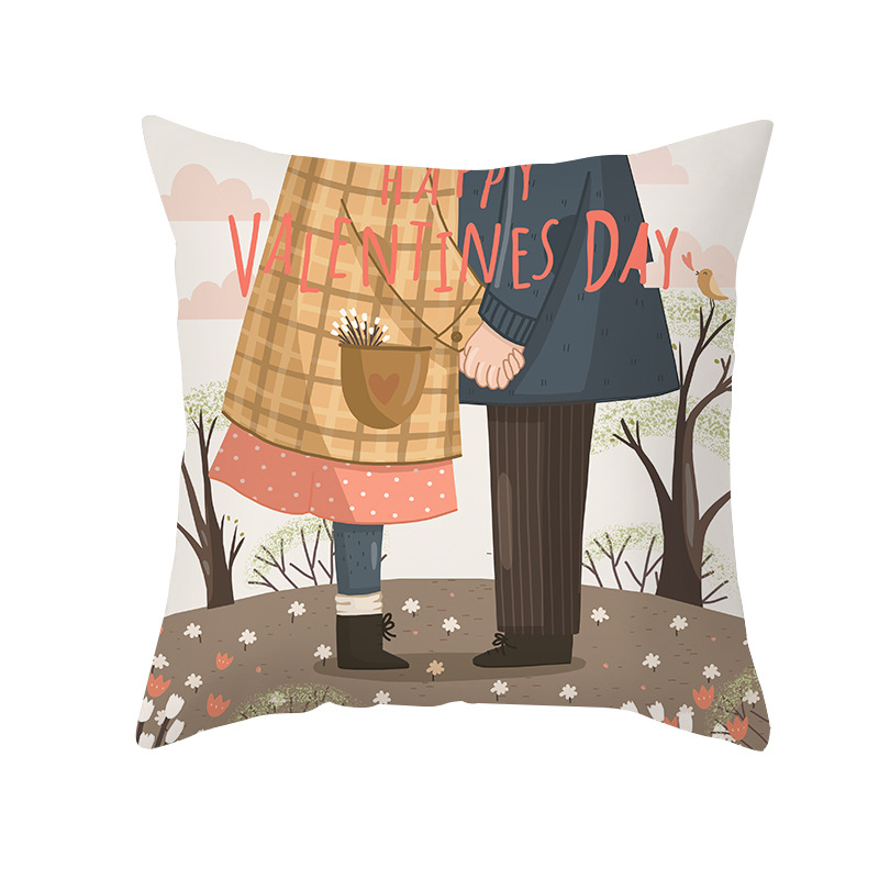 Valentine's Day Peach Skin Printed Living Room Bedroom Cushion Cover