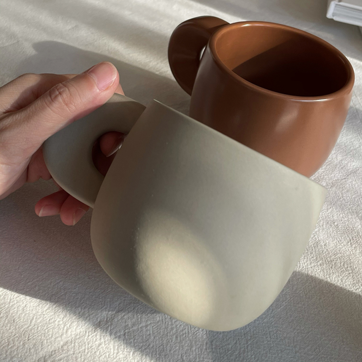Color classification: caramel color C-handle mug cup with mouth flow glaze, blue C-handle mug, frosted earth color C-handle mug, color mud type c-handle mug