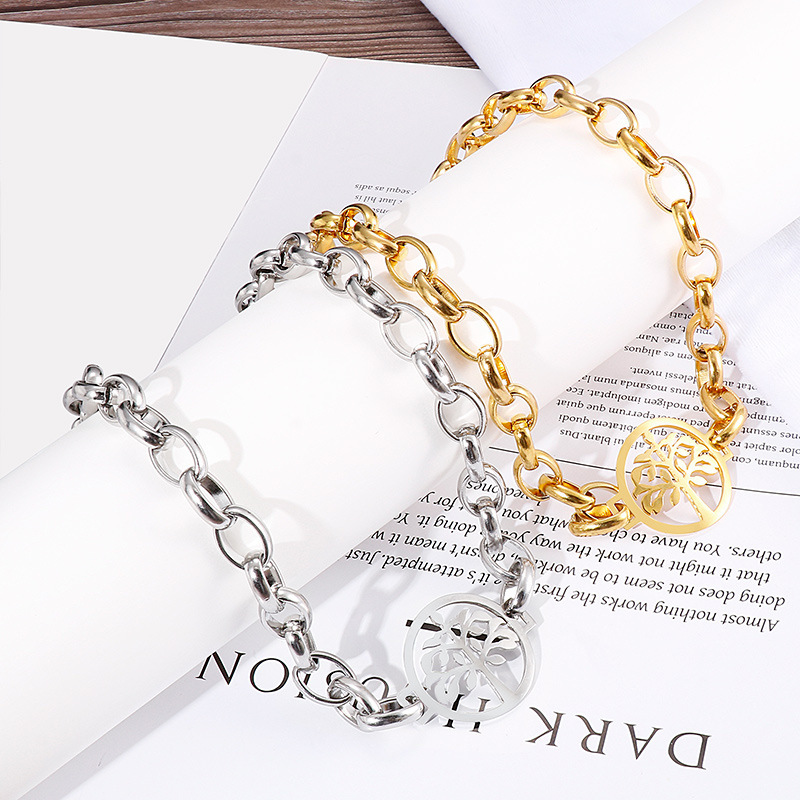 Personality Punk Metal Exaggerated Geometric Necklace Hollow Life Tree Fashion Set
