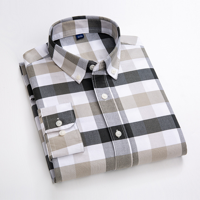 Men's All-match Cotton Plaid Long-sleeved Shirt