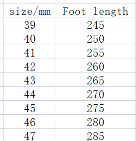 Sizes: 35, 36, 37, 38, 39, 40, 41, 42, 43, 44, 45