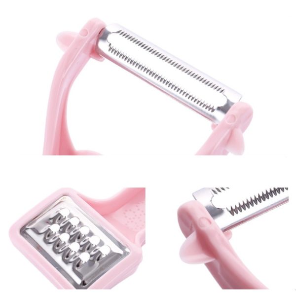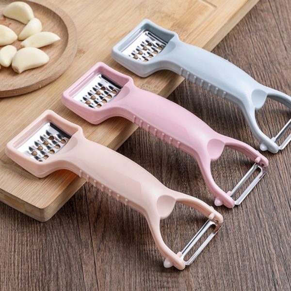 Introduction: Thick PP material, stainless steel blades, tough and sharp, labor-saving, four-in-one design, can be used for kitchen peeling, grating, garlic grinding, digging holes, etc., multi-functional use, easy to clean, it is a good helper for your kitchen.