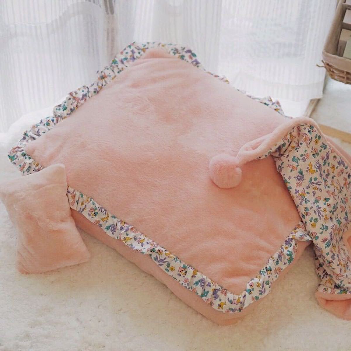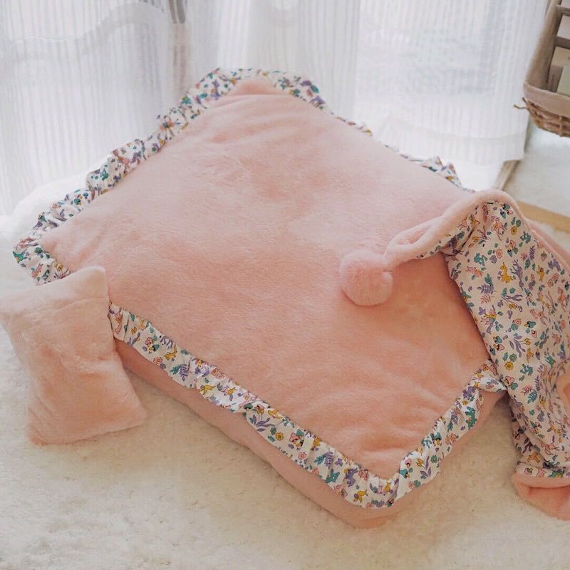 Color: pink rabbit fur cushions to send pillows, pink rabbit fur blankets, changing sets