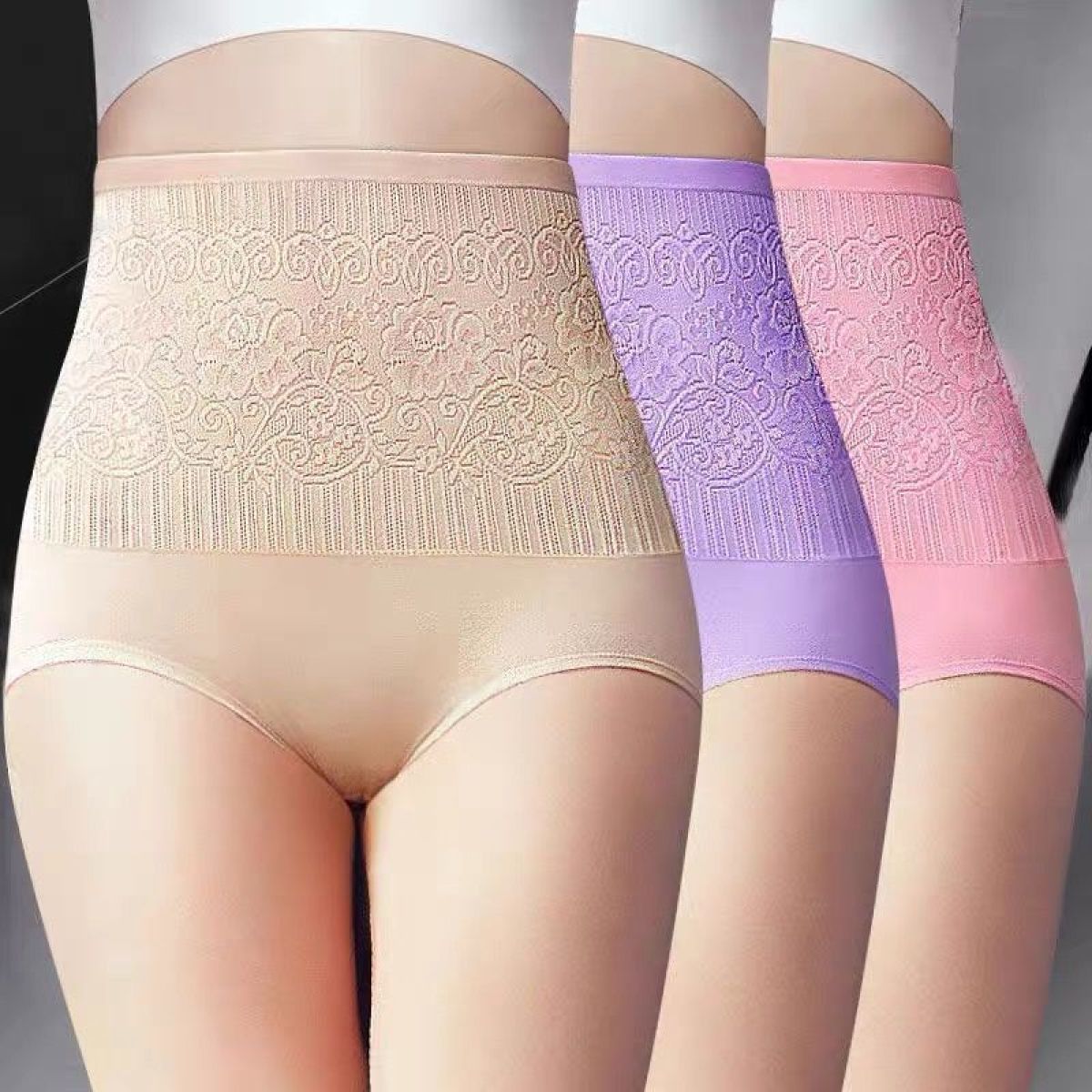 High Waist Abdomen Hip Raise Large Size Cotton Lace Sexy Panties