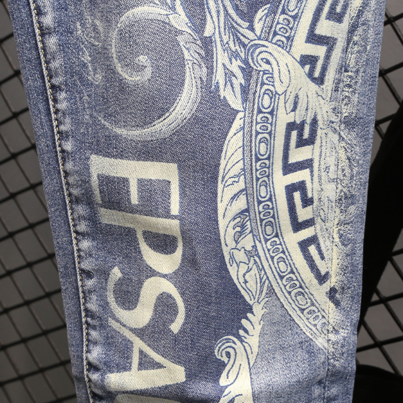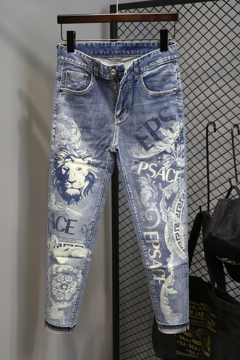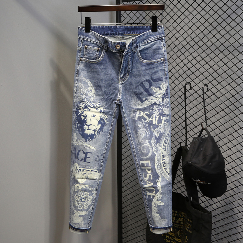 Lion Print Men's Jeans Summer New Slim Fit