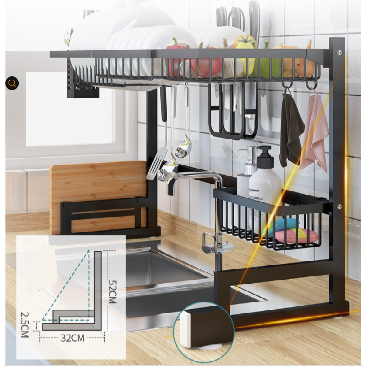 Bowl Rack + Dish Rack + Sanitary Ware Rack + Fruit and Vegetable Basket + Cutting Board Rack + Knife Rack + Upgraded Double Chopsticks Cage