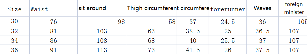 Size: 30 32 34 36