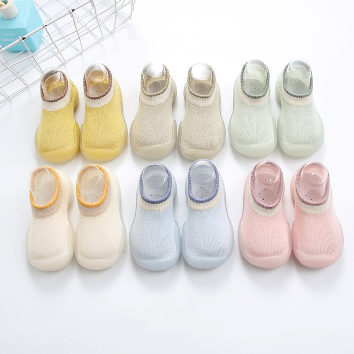 Color: yellow, light green, light blue, olive green, pink, beige