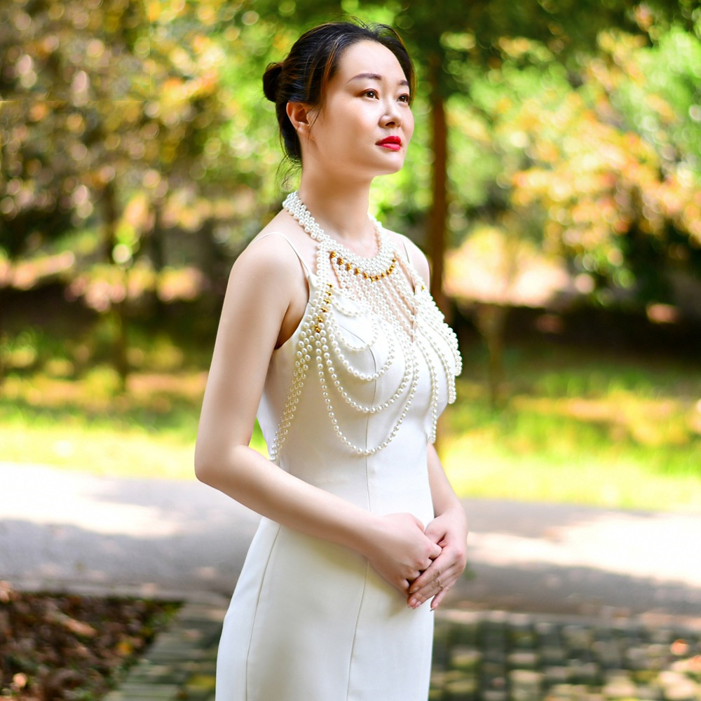 Material: Hand-beaded pearl cape