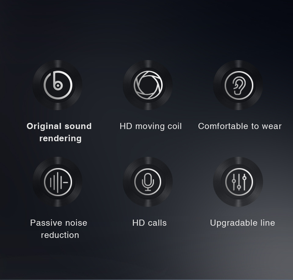 Headphone head, cable, 3 pairs of silicone sleeves