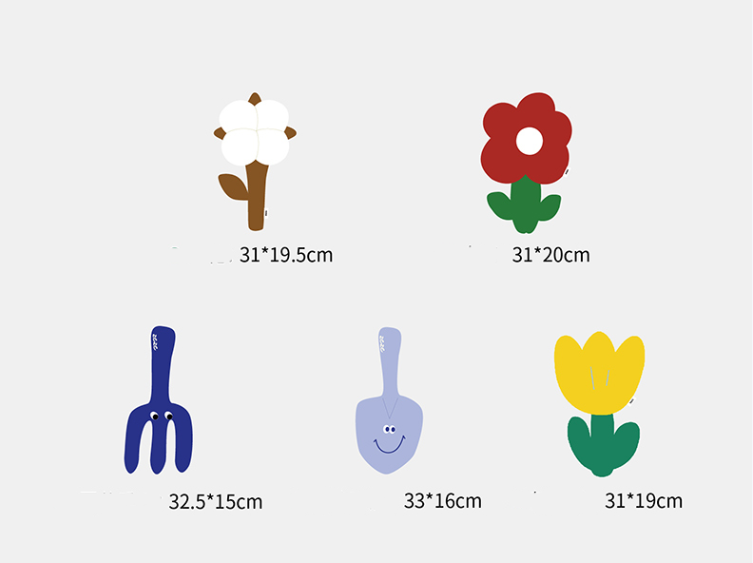 Style: small safflower, tulip, cotton, gardening hand fork, gardening hand shovel