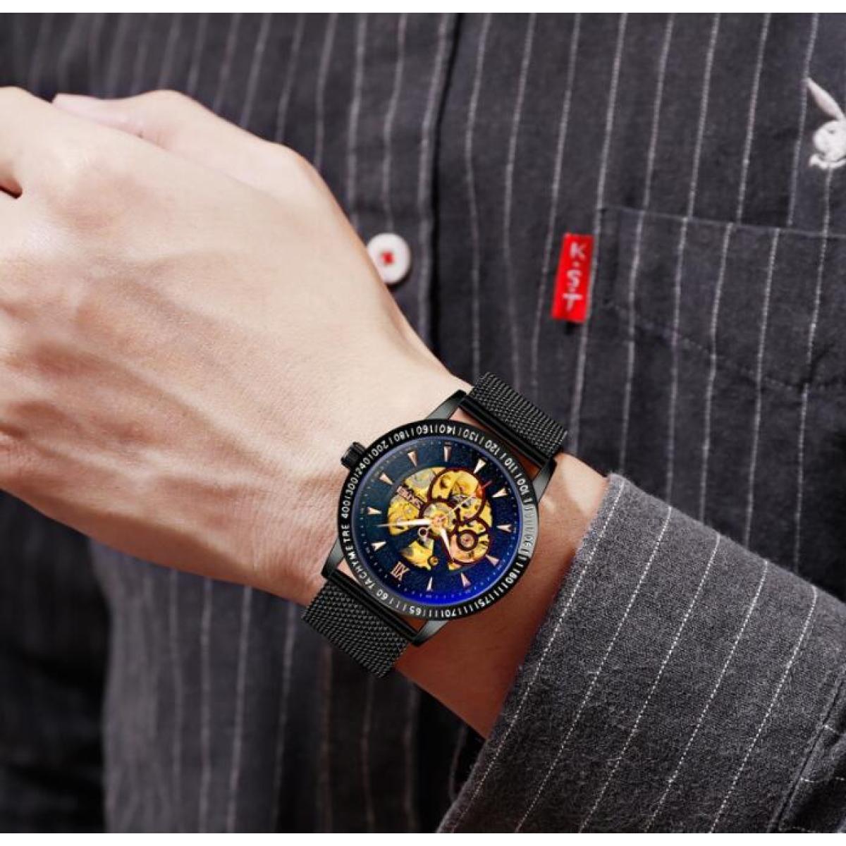 Material: Zinc alloy case, stainless steel strap, high transparent glass mirror, stainless steel + transparent glass bottom cover, stainless steel buckle