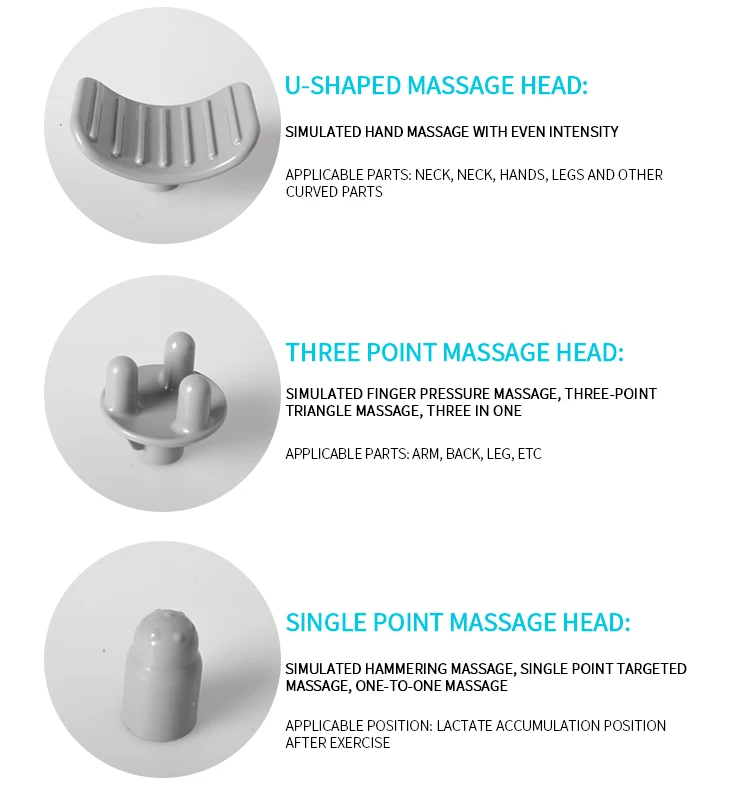 Contact type: convex round massage head, acupuncture massage head, U-shaped massage head, round massage head