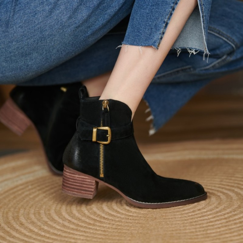Women's Mid Heel Round Toe Side Zipper Shoes