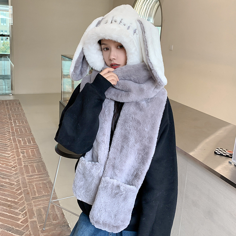 Cute Rabbit Ears Scarf Scarf Gloves All In One