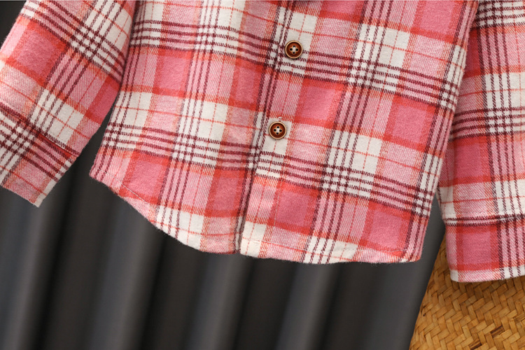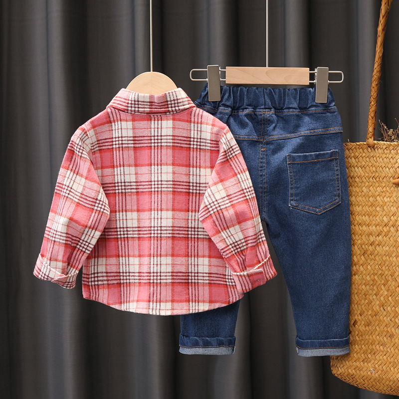 Color: Z tie plaid shirt set pink, Z tie plaid shirt set grey, Z tie plaid shirt set green