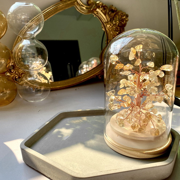 Material: natural crystal/wooden base/glass cover